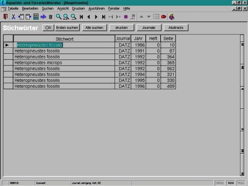 Heteropneustes und sammeln seit 1970 die DATZ. In die Suchmaske werden dann
