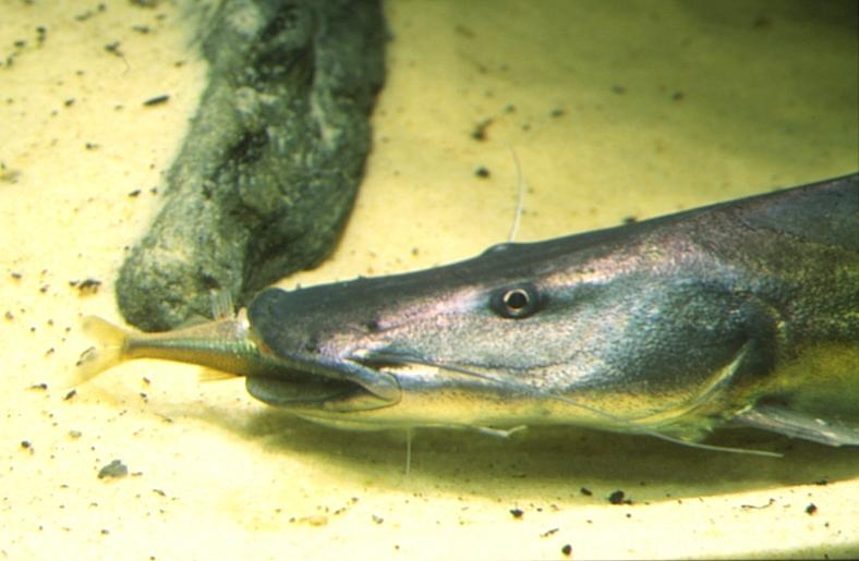 Wichtig ist auch die Futterfrage. Ich füttere meine Tiere nur ausnahmsweise und besonders während der Eingewöhnung mit lebenden Fischen wie Plötzen, Karauschen oder Rotfedern. Dies birgt neben der ethischen Fragestellung nämlich auch immer die Gefahr der Einschleppung von Krankheitskeimen. Leider nehmen einzelne Exemplare auch später nur lebende Nahrung an. Mein Hauptfutter besteht ansonsten aus aufgetauten und vitaminisierten Stinten oder Weißfischen. Die Stinte kann man über den Aquarienfachhandel beziehen während ich die Weißfische von befreundeten Anglern bekomme. Manchmal, namentlich im Winter wenn ich schlecht an größere Weißfische herankomme verfüttere ich auch zerschnittenes Seelachsfilet und dergleichen. Kleinere Welse und besonders die stöbernden Arten füttere ich auch gerne mit Regenwürmern, Fliegenmagen, Mehlwürmern oder Forellenpellets. Eingewöhnte Tiere können wahre Massen an Futter verschlingen. So kann die Beschaffung von Futter unter Umständen auf Dauer eine recht kostspielige Angelegenheit werden.