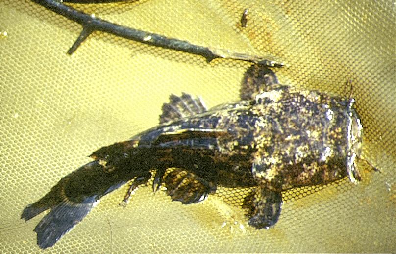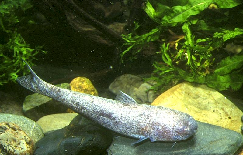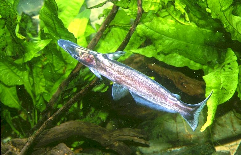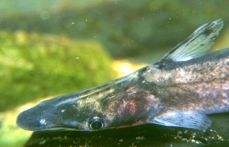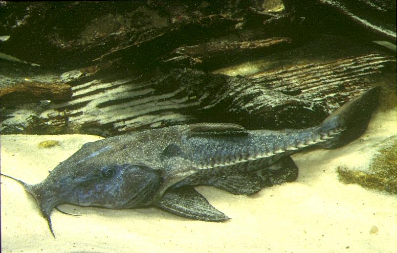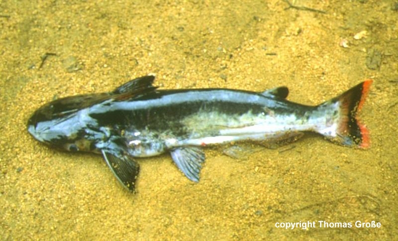 Bisweilen gelangen auch einzelne Arten der Familie Ageneiosidae zu uns. Über diese Fische von denen sich zumindest einzelne Arten über eine innere Befruchtung vermehren sollen ist bis heute noch sehr wenig bekannt. Die von mir gepflegte Ageneiosus-Art, deren wissenschftlichen Namen ich nicht herausfinden konnte und die ich hier als Ageneiosus sp., bezeichne, war anfangs sehr zögerlich in der Futterannahme. Später gab sich dies und die anfangs rein nachaktiven und dann sehr schwimmfreudigen Welse wurde zunehmend auch tagsüber aktiv. Gefressen wurde Stinte, Regenwürmer und Fischfleisch. Alle Ageneiosus sind ziemlich langgestreckte Räuber mit flachem Kopf und einem breitem zahnbewährtem Maul. Die Augen sitzen seitlich des Kopfes. Die meisten Arten der Gattung werden nicht mehr als etwa 40 cm groß und auch Ageneiosus sp. scheint darüber nicht hinweg zu wachsen. Besonders schön wird Ageneiosus brevifilis VALENCIENNES, 1840 (In Cuvier & Valenciennes) die mein Freund Thomas Große am Oberlauf des Rio Cuyuni im Osten Venezuelas fangen und fotografieren konnte. Die ausgewachsenen, etwa 40 cm langen Welse besitzen eine dunkle, ja fast schwarze Körpergrundfarbe. Die Schwanzflosse ist hinten mit einem breiten knallroten Saum geschmückt. Leider sind diese Tiere noch nie lebend nach Europa importiert worden. Da Ageneiosus nachts viel schwimmen, brauchen diese Arten ein möglichst langgestrecktes Aquarium mit viel freiem Schwimmraum.